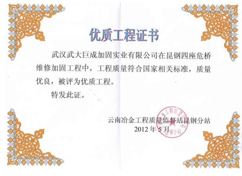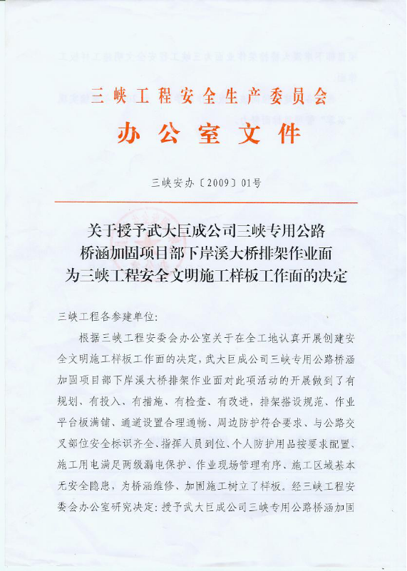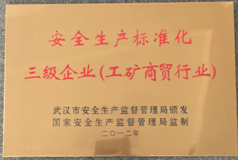 2012年武漢市安全生產監督管理局“安全生產標準三級企業”