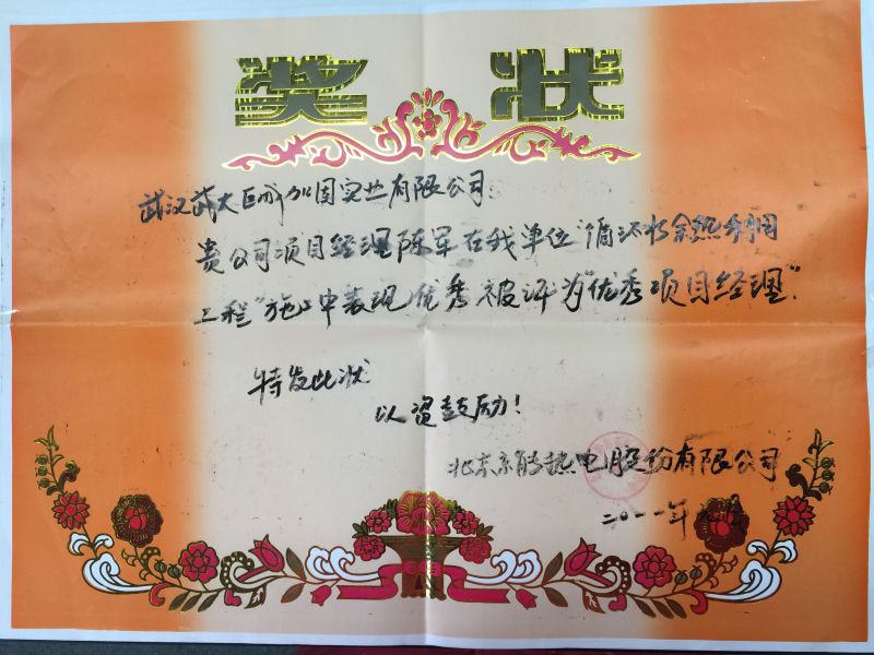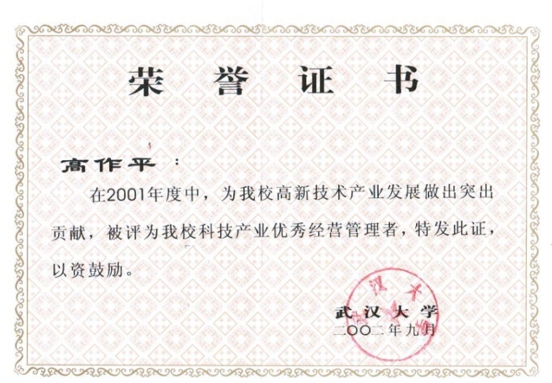 2015年東湖高新區管委會“3551光谷人才計劃榮譽證書”