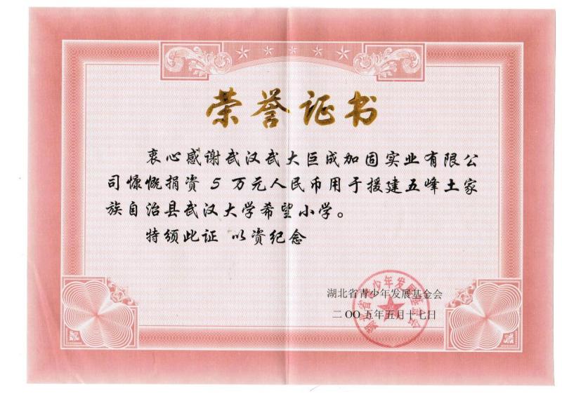 2005年援建五峰土家族自治縣武漢大學希望小學