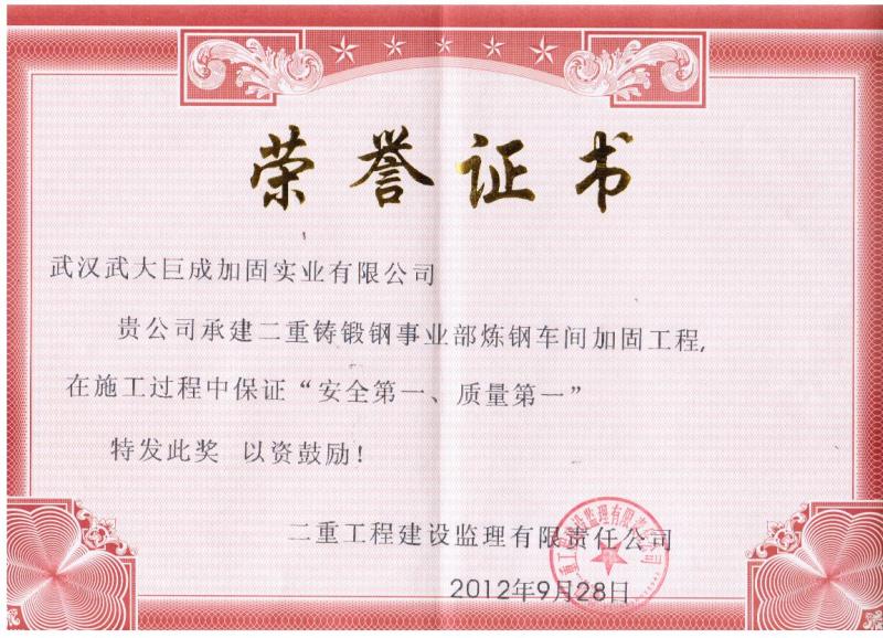 2012年二重建設監理有限公司“安全第一、質量第一”