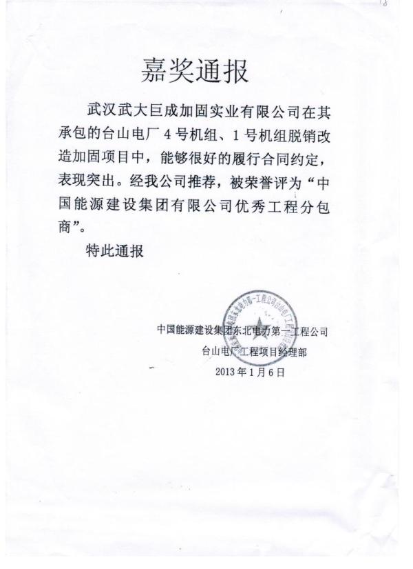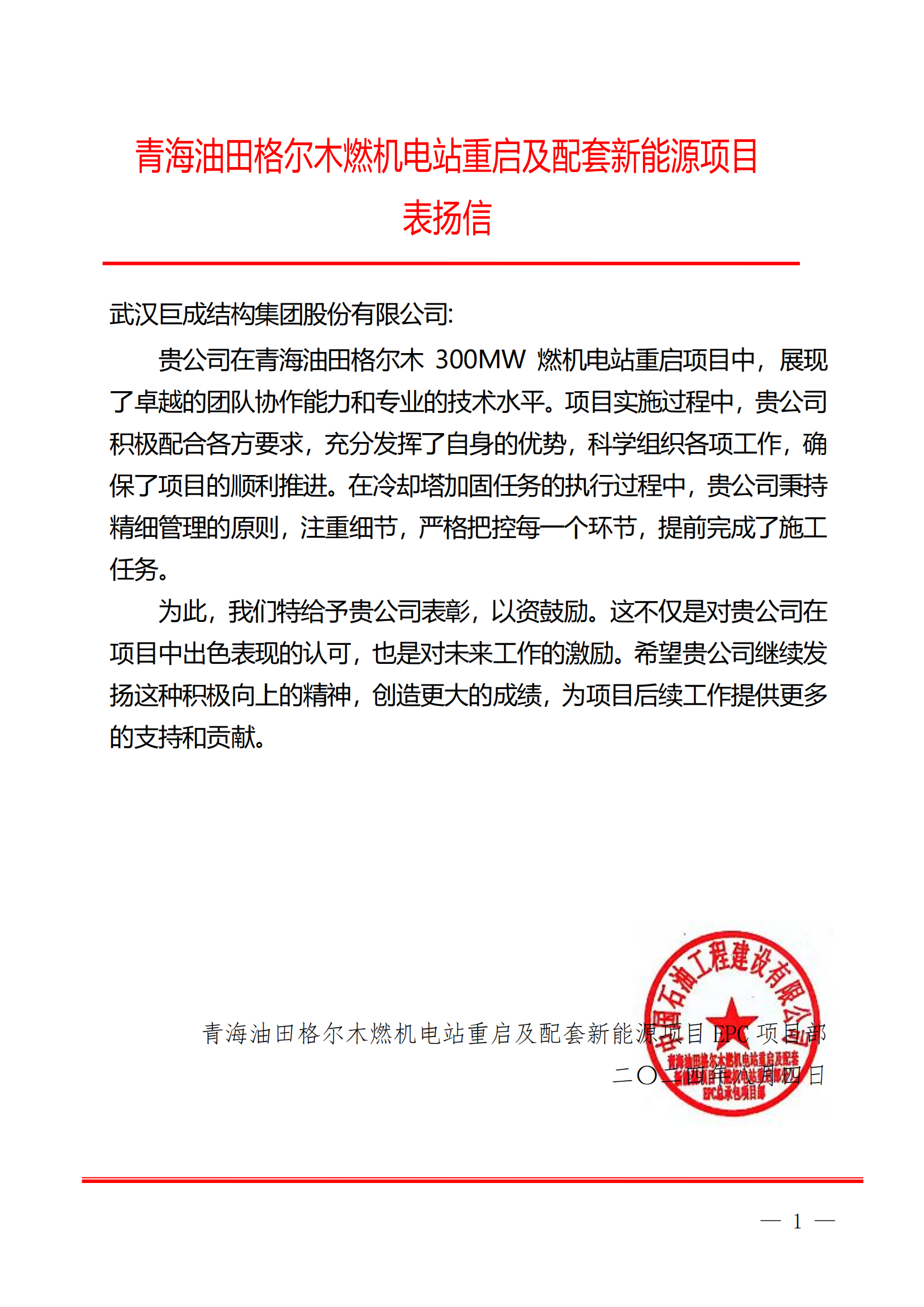 2024年青海油田格爾木冷卻塔加固項目 表揚信