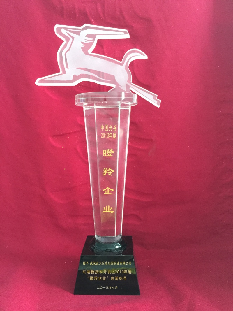 2013年武漢市東湖新技術開發區授予巨成“瞪羚企業”