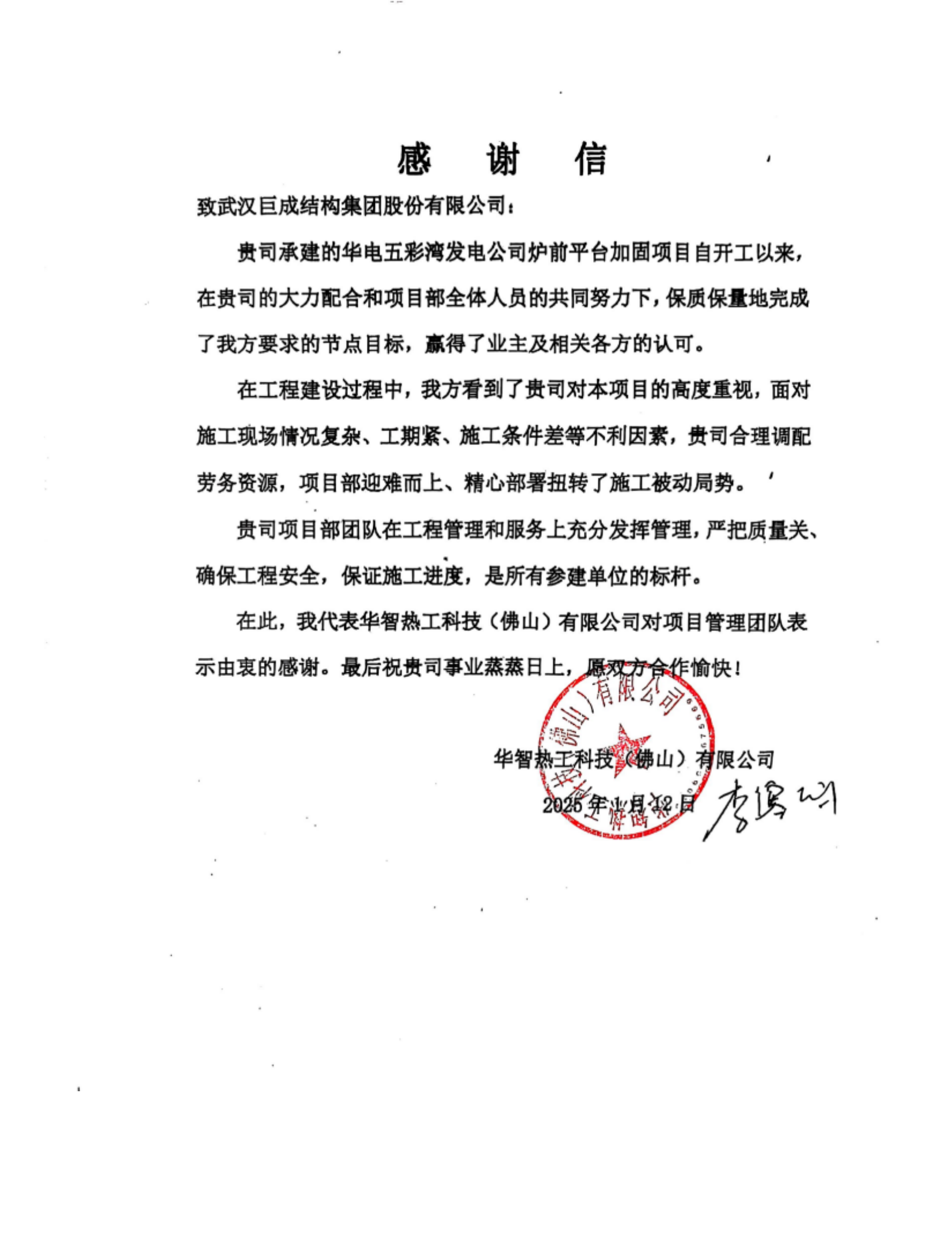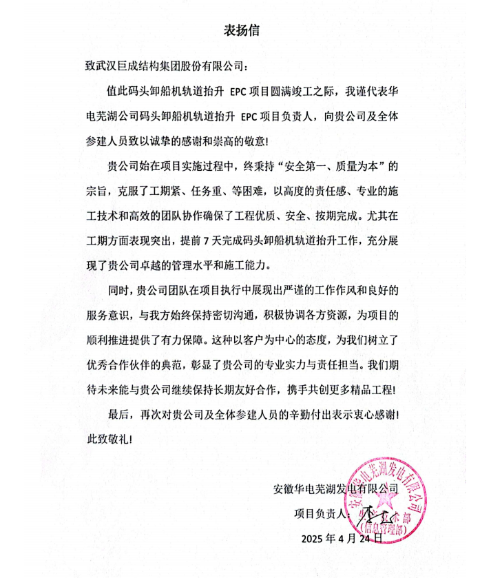 2025年安徽華電蕪湖發電有限公司 表揚信