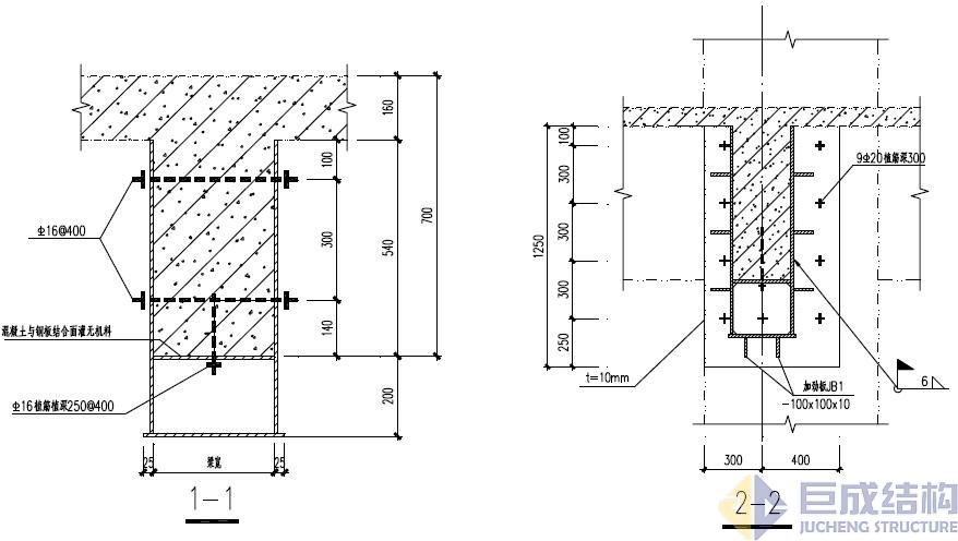 1、粘接型鋼加大截面