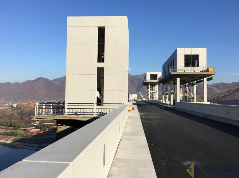 (觀音閣水庫)庫區自然環境優美藍天碧水,采用清水混凝土的工業建筑避免了與環境的沖突。