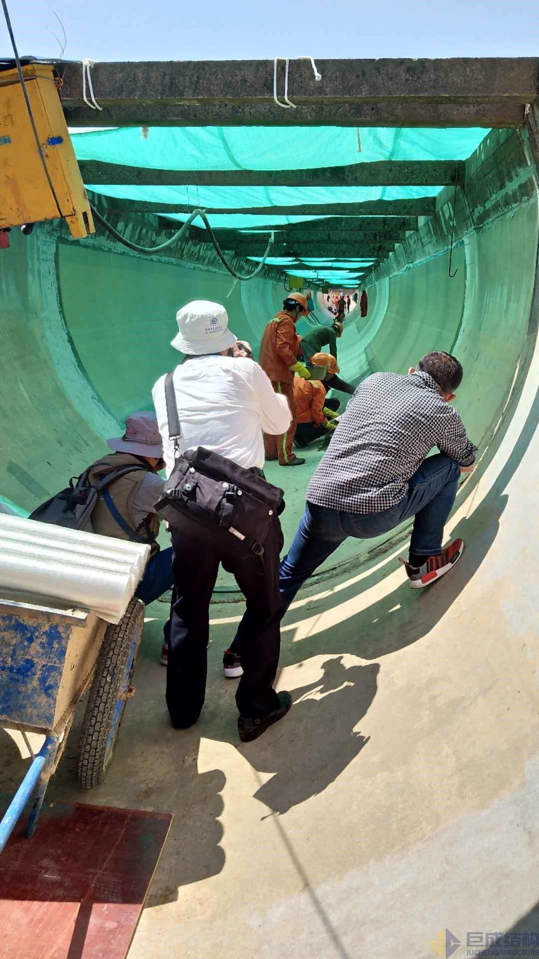 何書記一行到現(xiàn)場(chǎng)查看了施工情況,聽我方講解了施工工藝,然后來(lái)到了渡槽內(nèi)壁施工現(xiàn)場(chǎng)取景拍照。一位攝影師說(shuō),自己做了幾十年工人,覺得工人勞動(dòng)的照片才是最美的。