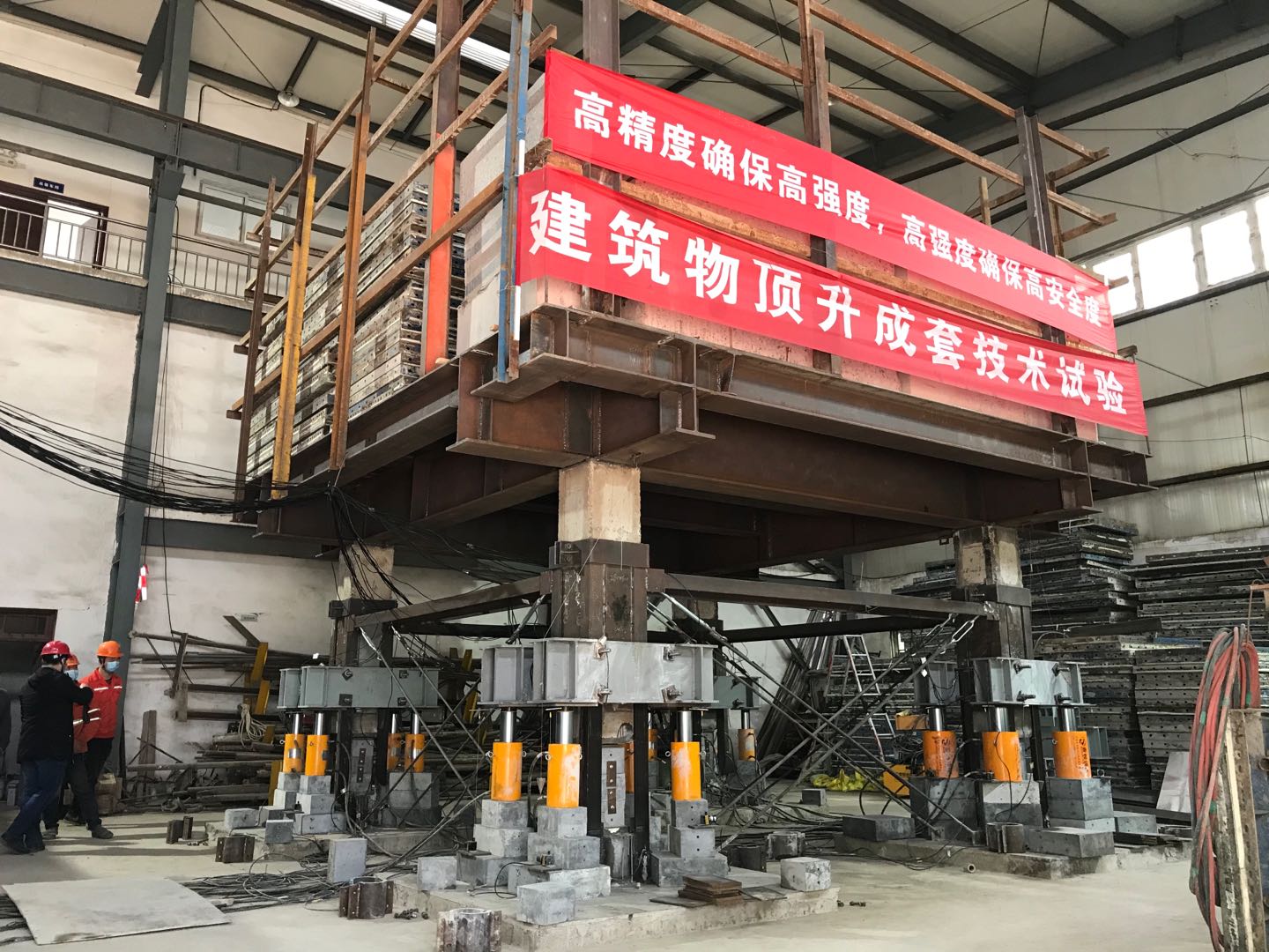 頂升試驗當天,公司董事長兼研究院院長高作平教授親自到現場指導工作,再次強調“高精度確保高強度,高強度確保高安全度”,并指出該項試驗是公司重大科技創新項目,在建筑物空間擴展方面走在前沿,應以科學嚴謹的態度完成試驗。