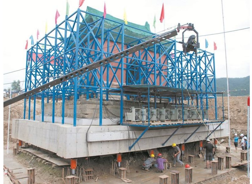 對于一些文物建筑或優(yōu)秀歷史建筑的保護也可以采用該技術(shù)。例如:武當(dāng)山遇真宮的頂升