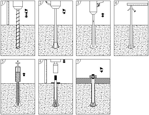鉆直孔→底部擴孔→清孔→測量擴孔→注漿→安裝錨桿→連接與安裝