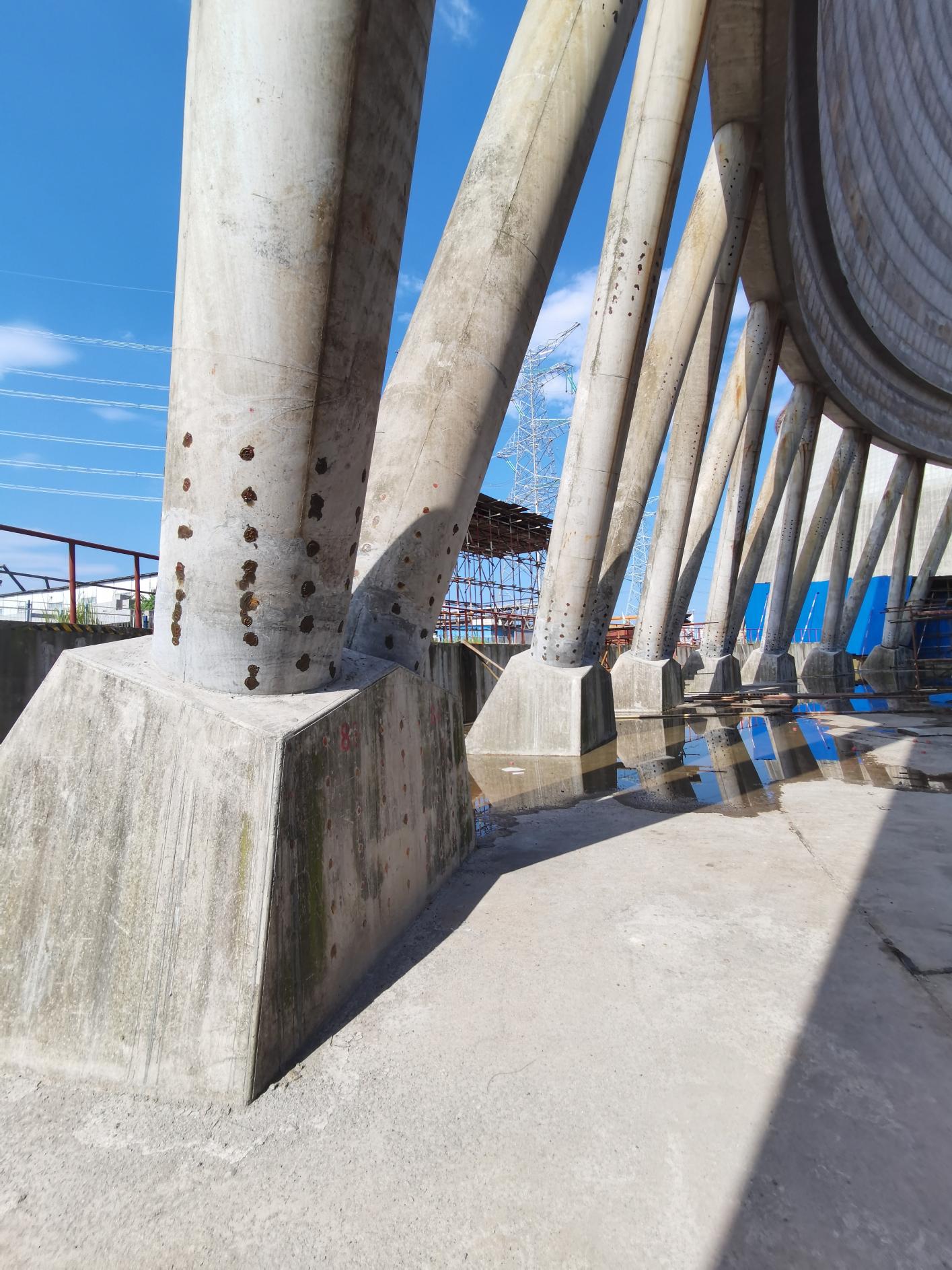 豐城電廠7#冷卻塔因發(fā)生過特大安全生產(chǎn)事故,為各方所關(guān)注。2020年復工后,巨成結(jié)構(gòu)憑借過硬的技術(shù)實力,榮譽承接了冷卻塔筒壁設計與加固工程。該工程屬于高危項目,開工前,巨成結(jié)構(gòu)的設計方案和施工組織設計均通過了專家論證。其中采用的多項巨成專有技術(shù)也得到了各位專家的認可,如:擴孔自鎖錨固技術(shù)保證新舊混凝土緊密結(jié)合、補償收縮細石混凝土保證施工質(zhì)量、便攜式鋼平臺保證施工安全、曲線施工升降機保證垂直運輸。