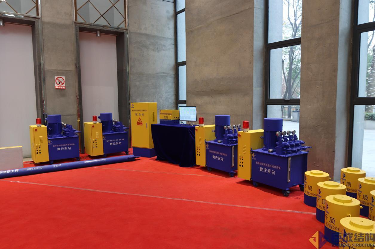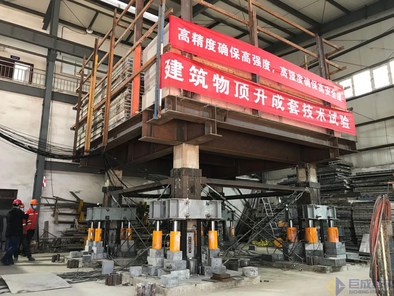 2020年4月鋼滑道頂升增層成套技術試驗在武大巨成實驗室完成,該試驗標志著集中控制同步頂升成套設備和鋼滑道頂升技術的完美結合。
