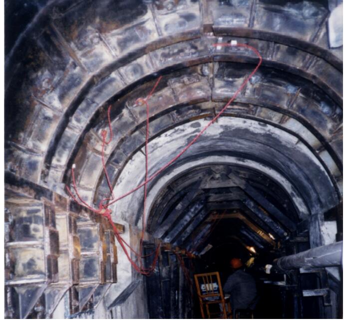 電站運(yùn)行一段時(shí)間后,現(xiàn)場(chǎng)發(fā)現(xiàn)預(yù)制混凝土拱頂出現(xiàn)了沿廊道軸向方向的縱向裂縫,預(yù)制拱與現(xiàn)澆邊墻交接處混凝土出現(xiàn)剝落,這對(duì)廊道的安全運(yùn)行構(gòu)成了威脅。最后采用巨成公司自鎖錨桿將加固用鋼板進(jìn)行錨固,場(chǎng)地解決問題。本項(xiàng)目2000年實(shí)施,使用自鎖錨桿4.6萬只,是擴(kuò)孔自鎖錨桿的第一次大規(guī)模應(yīng)用。