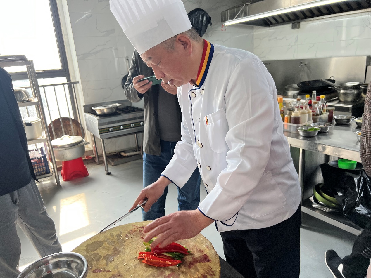 在培訓現(xiàn)場,管大廚為大家詳細講解烹飪的各個環(huán)節(jié),從選擇原材料、食材粗加工,再到菜肴制作技巧,主料、輔料的用量及放置順序等,對烹飪過程中的關鍵步驟進行重點指導。管大廚通過理論結(jié)合實際,煎炒燜炸鹵燉,邊講授邊操作,不少認真好學的學員紛紛拿出手機,拍攝教學視頻或記錄操作步驟。通過培訓,巨成全體廚師表示將舉一反三,提高個人烹飪技能,更好地為巨成員工制作味美、健康的工作餐。員工也學會了一兩道拿手菜,提升家人舌尖上的幸福。