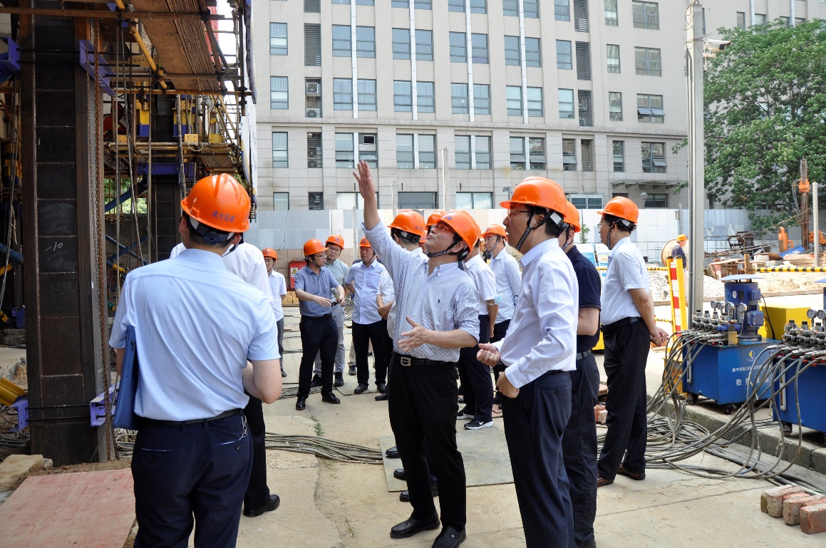出席會議的院士專家在由巨成結(jié)構(gòu)應(yīng)用自己專利打造的十九層清水混凝土總部辦公大樓前合影留念,隨后參觀調(diào)研巨成群控同步頂升工程試驗,聽取了巨成結(jié)構(gòu)副總經(jīng)理張暢關(guān)于巨成群控同步頂升技術(shù)的研發(fā)歷程、技術(shù)創(chuàng)新、試驗進展等方面的介紹。各位院士專家深入試驗,從工程試驗的結(jié)構(gòu)部分,地基框架等方面和公司相關(guān)負責(zé)人進行交流。