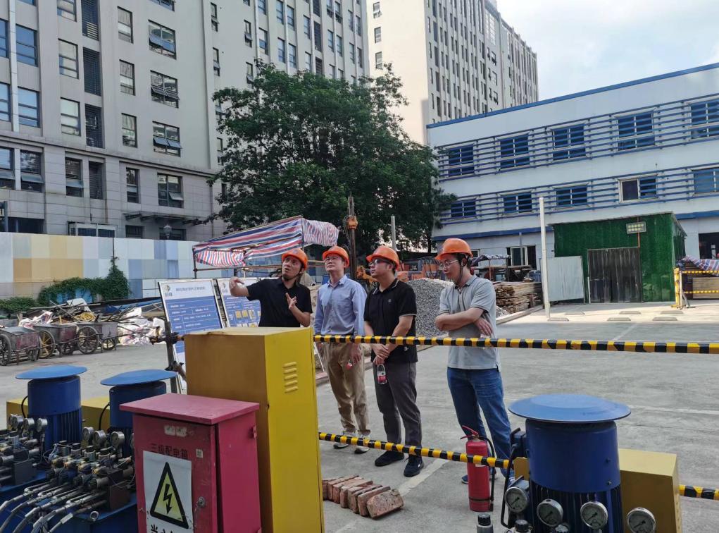 王院長一行參觀了巨成群控同步頂升工程試驗項目現場,巨成結構周志勇介紹了頂升試驗的背景和目的,并對鋼滑道頂升技術原理和群控同步頂升大型數控設備做了詳細講解。雙方就鋼滑道頂升技術原理和應用場景展開了深入的討論和交流,并一致認為巨成群控同步頂升技術能夠在老舊小區改造等領域發揮重大作用。來賓還參觀了清水混凝土樣板墻以及巨成總部辦公樓清水混凝土實體工程,認真聽取了清水混凝土施工方法、施工工藝等。