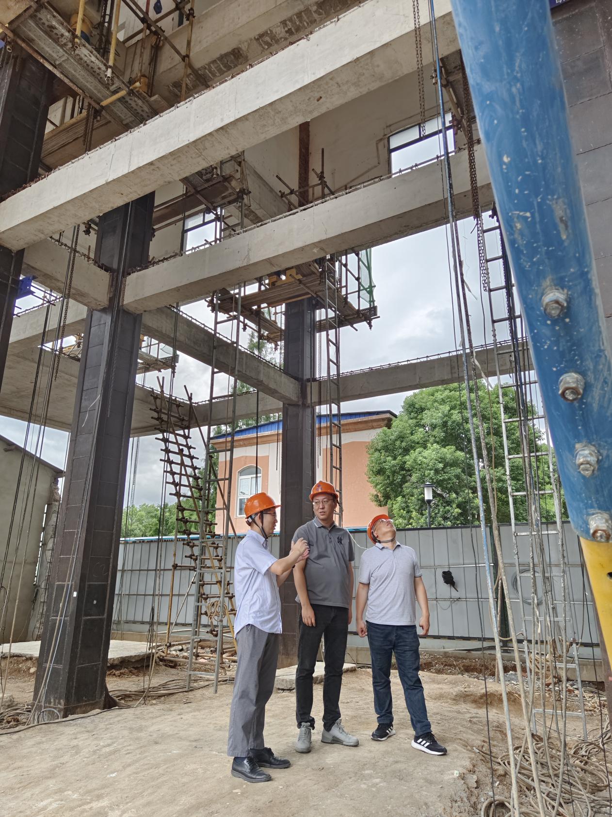 在巨成群控同步頂升工程試驗項目現場,巨成周志勇介紹了工程試驗的背景、目的和實施過程,雙方就鋼滑道頂升技術應用場景進行了深入交流和討論。恰逢巨成開展“群控同步頂升工程試驗”新聞發布會,李主任對巨成表示祝賀。